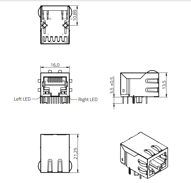 Product name : 100BASE-TX Through-hole Magnetic RJ45 Jack for Routers 7499011222A